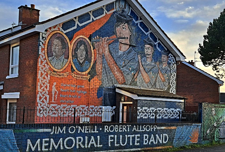 cedulí a murálů, věnovaných památce lidí, kteří byli zastřeleni během nepokojů v sedmdesátých a osmdesátých letech.