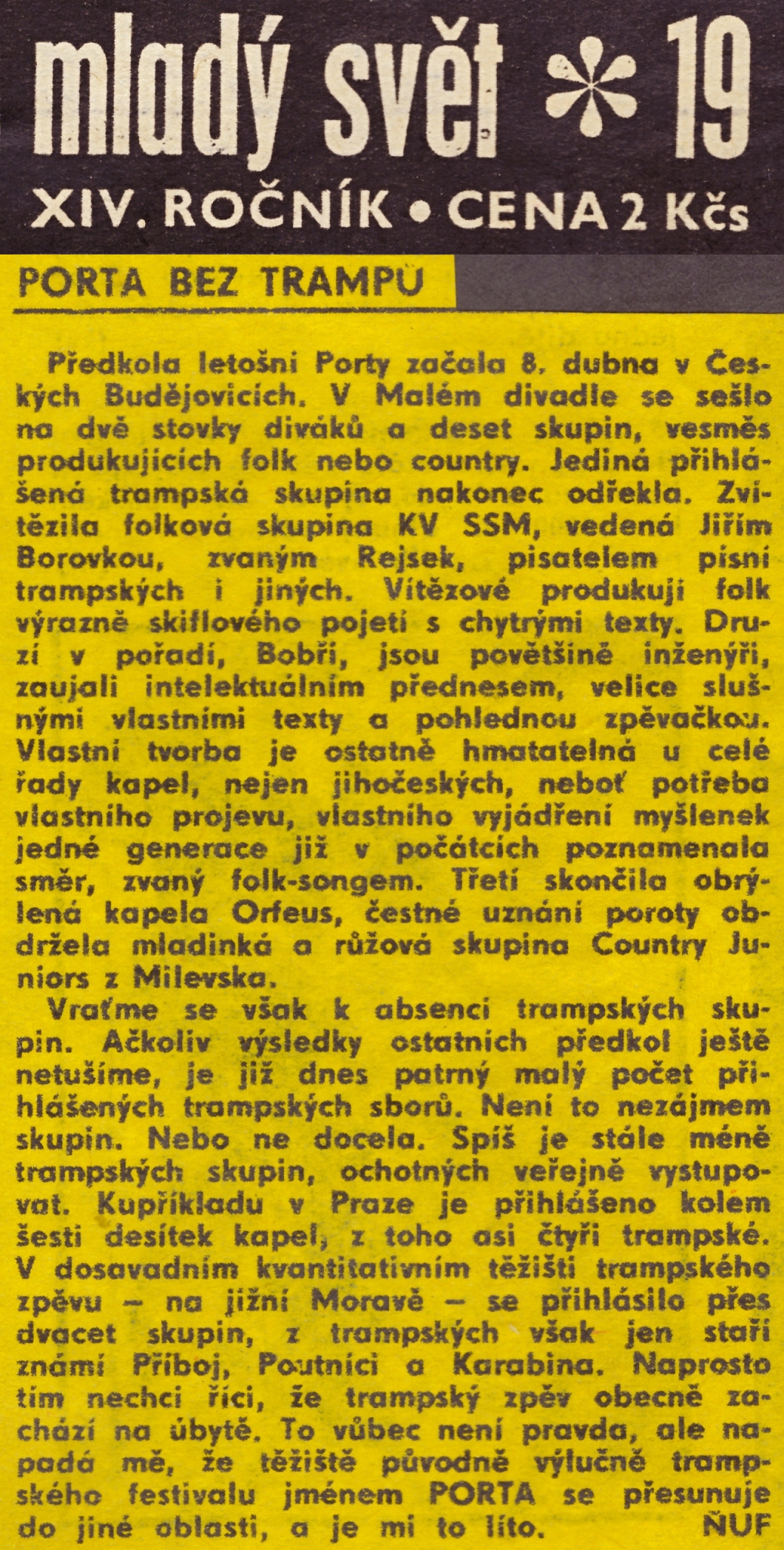 (neoženil a neodstěhoval se). Pozvali nás jako hosty na trampské finále PORTY do Litomyšle. Zahráli jsme úspěšně, zachovaly se dvě