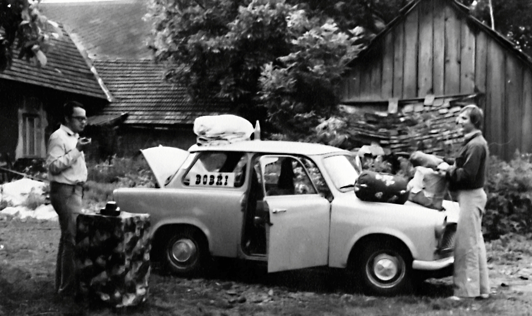 K ránu se strhla bouřka, Jarda Krauz, Roman, basová bedna a já jsme se do růžova vyhajali v Trabantu.