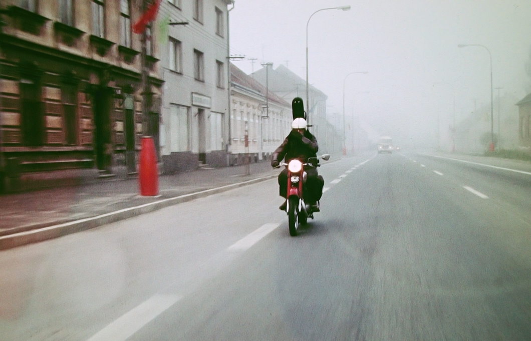 doprovázel na motocyklu Pionýr (obsah 50 ccm, nejvyšší rychlost přes 45 km/hod, s kopce i víc!).