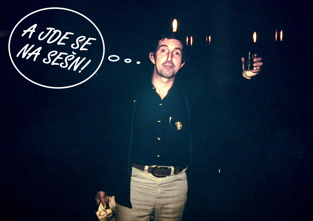 Bobři hráli už beze mě, já jsem bušil do piána u Zřídla. Jarda zazpíval mou orientální satirickou kompozici Šejk.