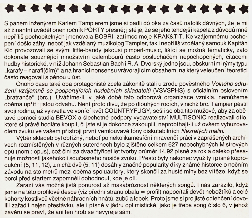 jiné firmy, většinou také bohužel dočasné. Po šesti letech nechal Kid naše záznamy přemixovat, v písni Kdo mi zatlačí oči vymazat smyčce a výsledek