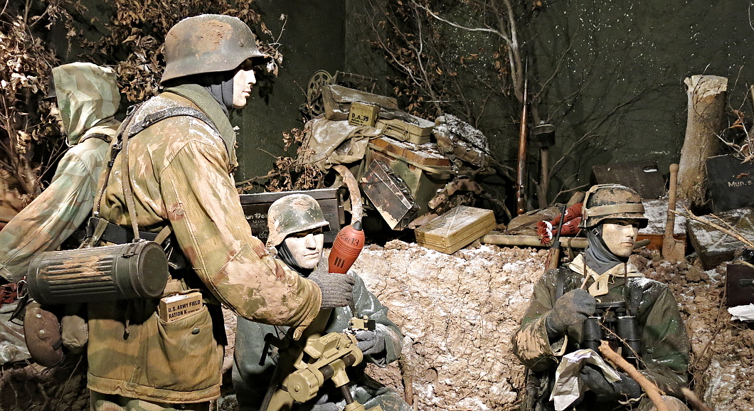 Pomyslel jsem si: Který kokot mohl nařídit na závěr prohrané války nesmyslný útok o vánočních svátcích? Samozřejmě, Hitler! A podíval jsem se do další vitríny a
