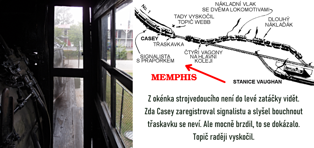 Unavený strojvedoucí Casey Jones podle jednoho zdroje klimbal. Z kabiny, zvláště v noci, není moc dobrý výhled. V zatáčce před stanicí