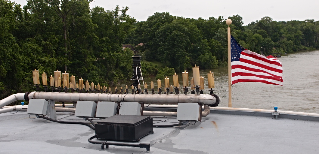 I když možná v tomto případě jsou na stlačený vzduch, neboť loď nemá žádný parní kotel. Za časů dávných showboatů na takový nástroj mocné