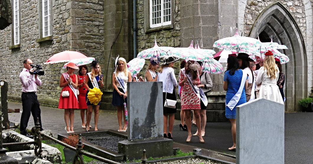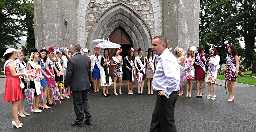 Tu nám došlo, že je zase konec srpna a že dámy jsou vyzbrojené šerpami s nápisy, které je usvědčují z účasti na festivalu Rose of Tralee, ročník 2013.