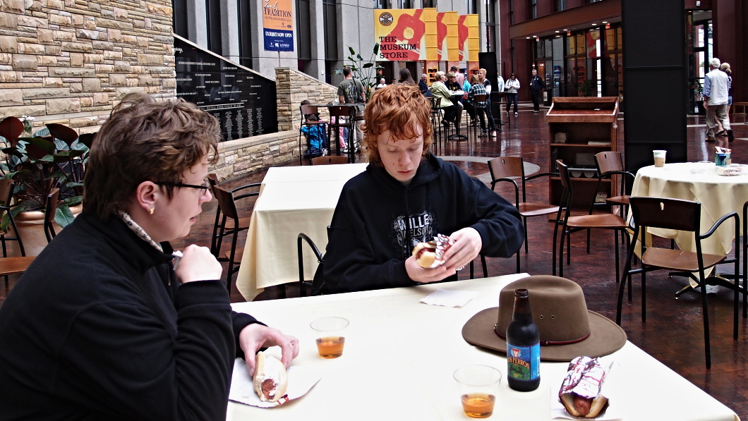 Nečekali jsme až začne natírat trávu na zeleno a vešli jsme do muzea. Poobědvali jsme hot dog v místní dvoraně. To není Dvorana slávy,