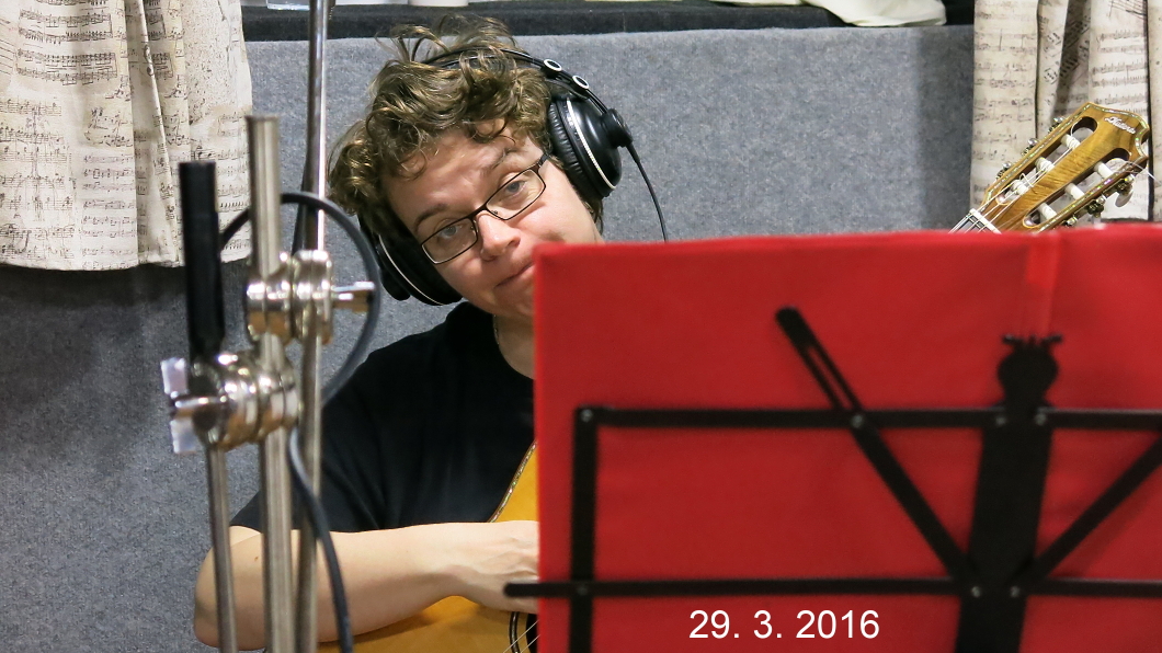 Vyčítavý pohled Věry Kláskové při nahrávání projektu Wide, Wide Waters. Zase jsem nebyl střízlivý.