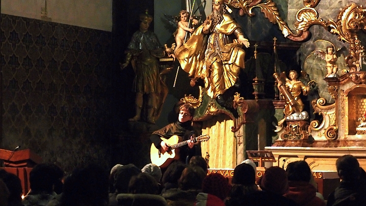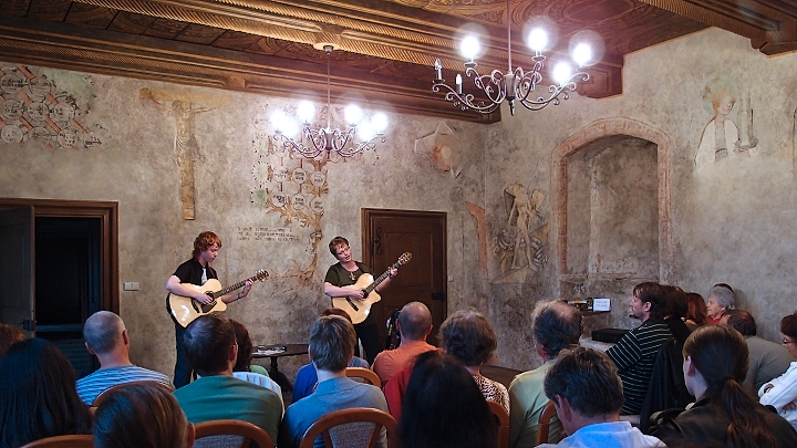 Český Krumlov: koncert ve zcela přeplněném gotickém sále prelatury.