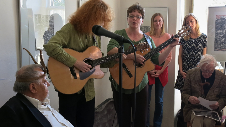Praha: Zahráli jsme panu Mézlovi na vernisážích jeho výstav k 80. narozeninám.