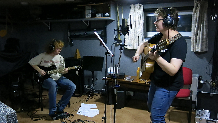 Nový Oldřichov: Nahrávání CD Vodou širou, širokou ve studiu Audio Factory. Věra, Ondra,