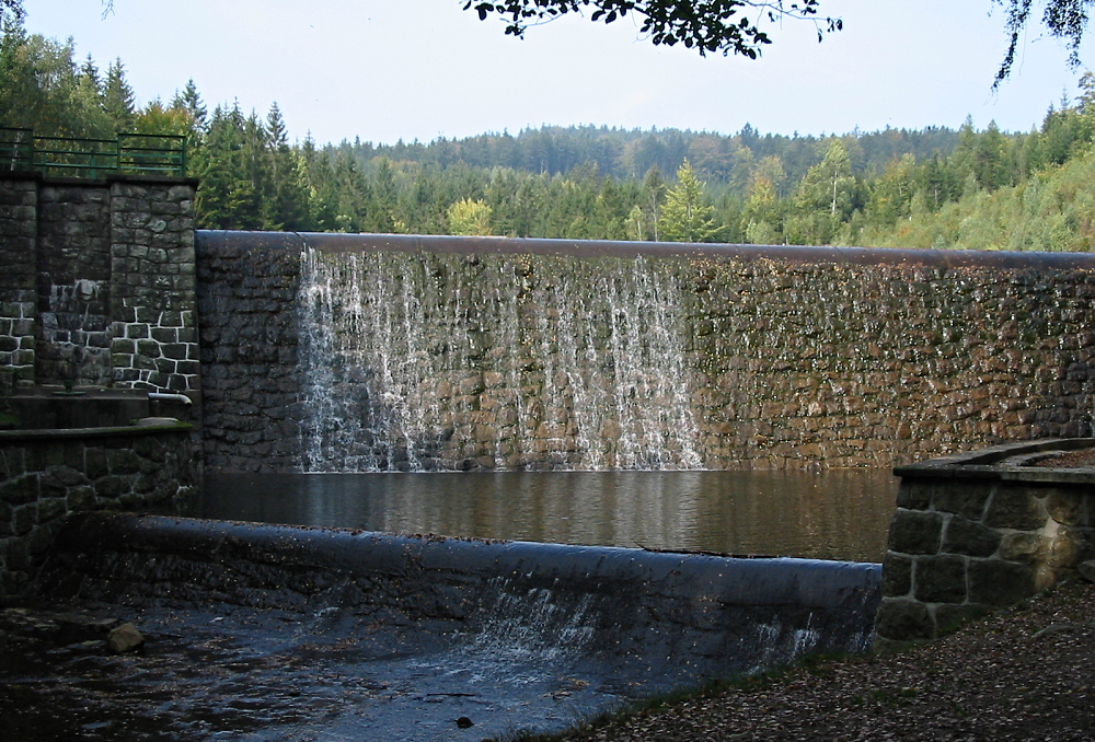 přehrada s ledovou čistou vodou,