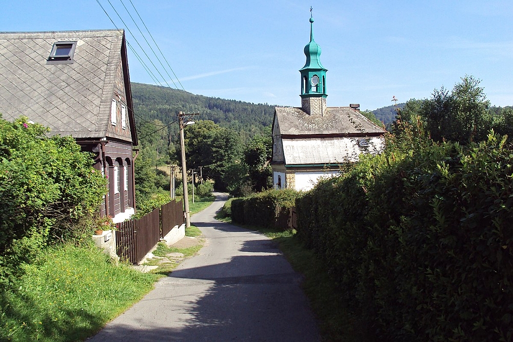 podhorské roubenky v osadě, jejíž název se mi obzvlášť líbí v dnešní nenadějné době: