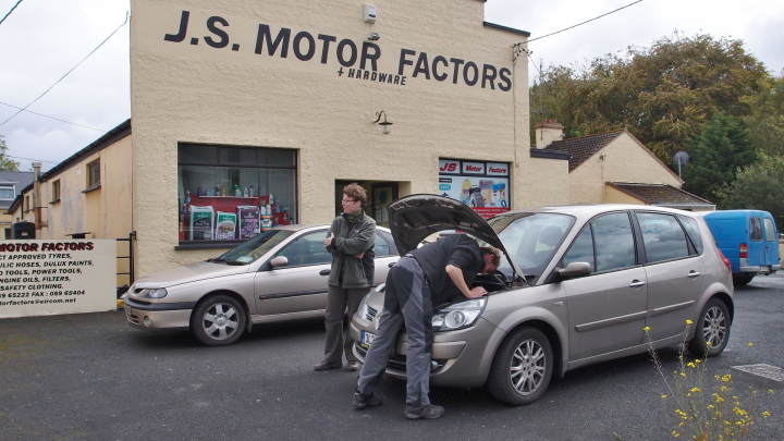 Opět zázrak, poblíž Limericku byla otevřená prodejna náhradních dílů. Koupili jsme žárovky,