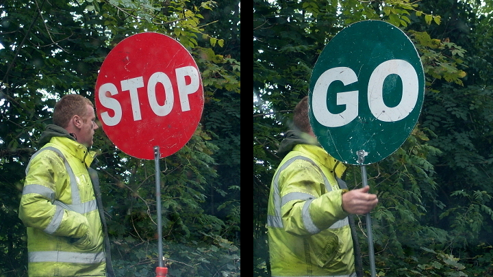 Pokud se silnice opravuje a je jeden jízdní pruh uzavřen, většinou nepoužívají světelnou signalizaci,