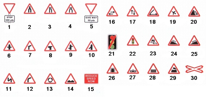 Dopravní značky mají jednodušší než my a snadno pochopitelné. V Severním Irsku jsou podobné našim,