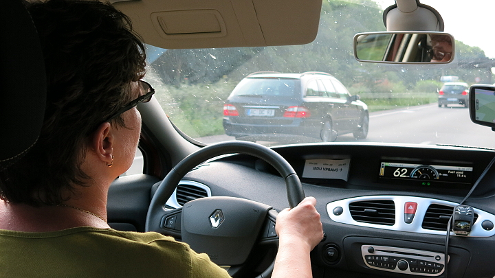 A Věra se opět chopila volantu a Allan fotil za jízdy.