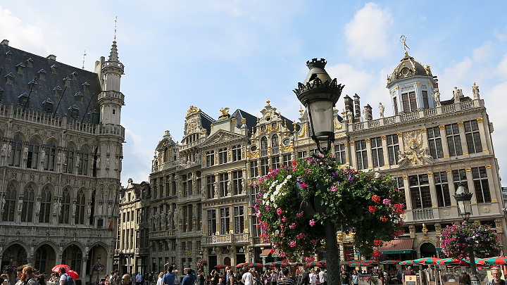Brusel s Irenou - moc krásný den - přes město - Vítězný oblouk, kolem institucí, metrem do centra: Delirium tremens (pivo), čurající holčička, kluk, pes. Rybí bufet (místní speciality), stará tržnice, ve které je kavárna a galerie.