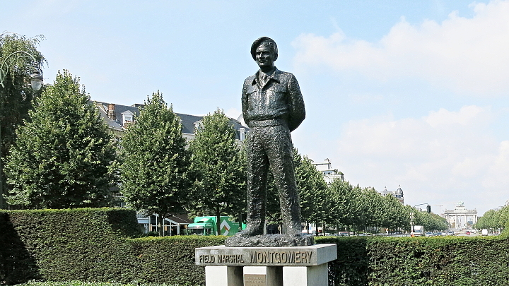 S pomníkem feldmaršála Montgomeryho jsme již v Bruseli. Na pozadí, a i samostatné fotce jest Vítězný oblouk (oslavující nezávislost Belgie).
