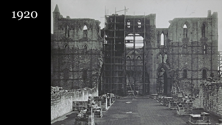 Školy královny Margarety ze Scarborough, které hbitě vynosily vzácný inventář. Třetina budovy ale zůstala beze střech a trvalo 20 let, než byly zahájeny konečné restaurátorské práce.