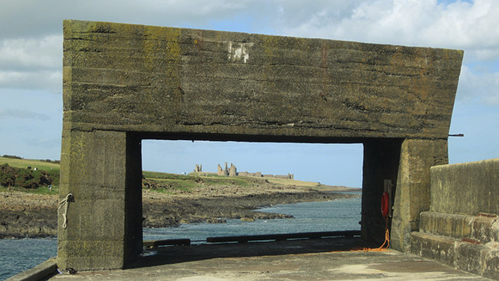 V přístavu mají podivné betonové stavby: na téhle mohla Věra obzírat širé moře, skrze tu další je možno čučet na hrad — výborná pomůcka pro začínající malíře!