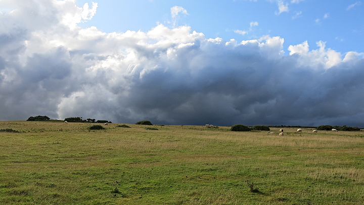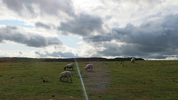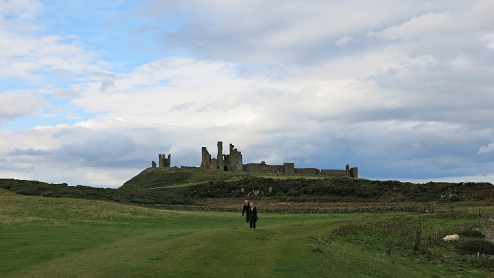 Vzhůru na hrad! Kráčeli po lukách mezi ovcemi a Allan fotil a hned mi to posílal.