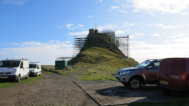 LINDISFARNE - krásné počasí, světlo → hned v 9.00 - málo lidí, atmosféra × hrad se opravuje (nepřístupný)