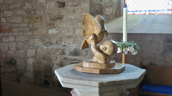 Velmi zvláštní víko na křtitelnici, krásné kovářské práce.