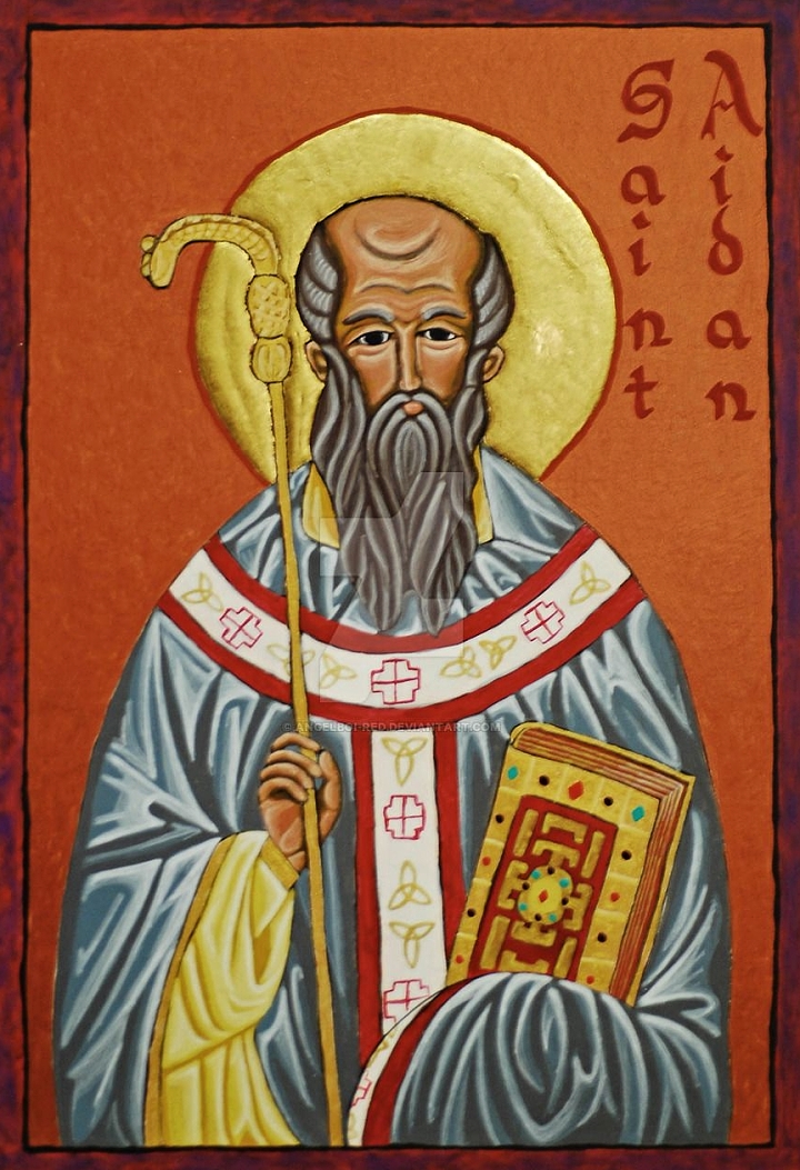 sv. Aidan, irský mnich, kterého sem poslali na žádost krále