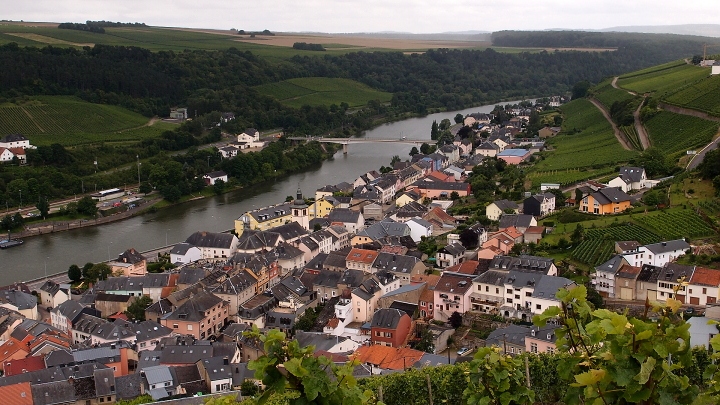 A nad úrodným krajem vlaje vlajka velkovévodství lucemburského. Vinice jsou nekonečné, všude proti i po proudu