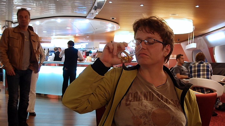 Hoek van Holland, povečeřeli v pizzerii a nalodili se. Trajekt byl opatřen několika bary, takže jsme nestrádali, velitel se záhy uvolnila.