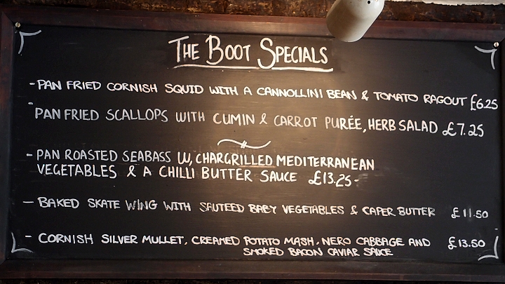 Teprve poté, co jsme si klidně objednali, pojedli a zaplatili, jsme si uvědomili dvě věci: byli jsme v místě, které patrně navštívila nejedna světově známá osobnost (a nechala tam na památku své boty) a přišlo nás to na stejné peníze jako kdekoli jinde v Anglii.