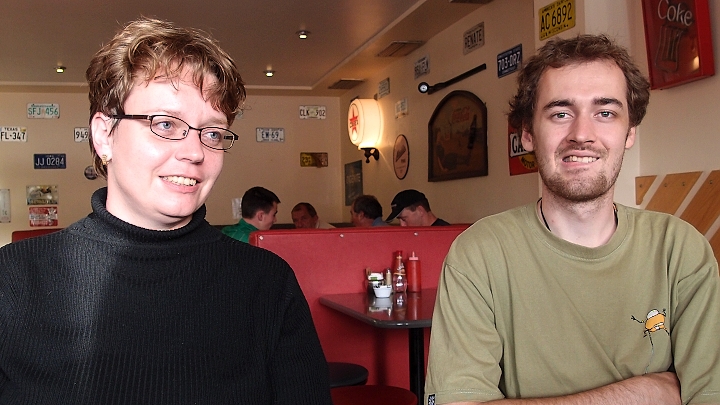 Proběhli jsme krátce městem, podívali se na pár univerzitních budov a pokračovali vesele dále. Začal nás sužovat hlad, i ohlíželi jsme se po nějaké hospodě. Úplnou náhodou jsme odbočili k pubu