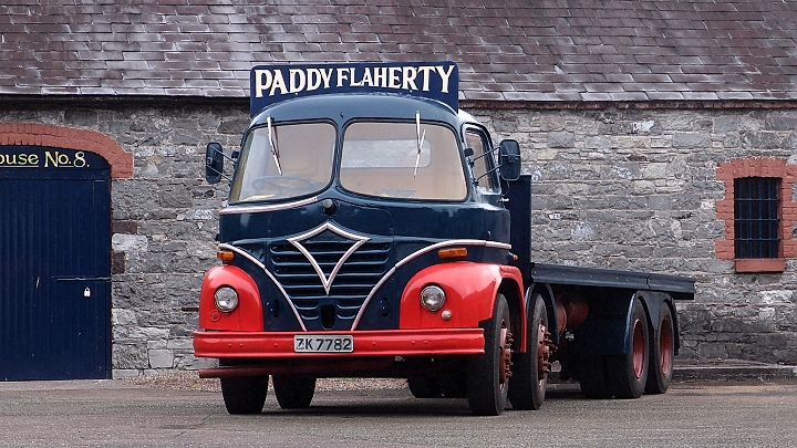 Na dvoře stojí krásné náklaďáky na rozvoz whiskey. Je patrné, že některé patřily přímo firmě a jiné externistům.