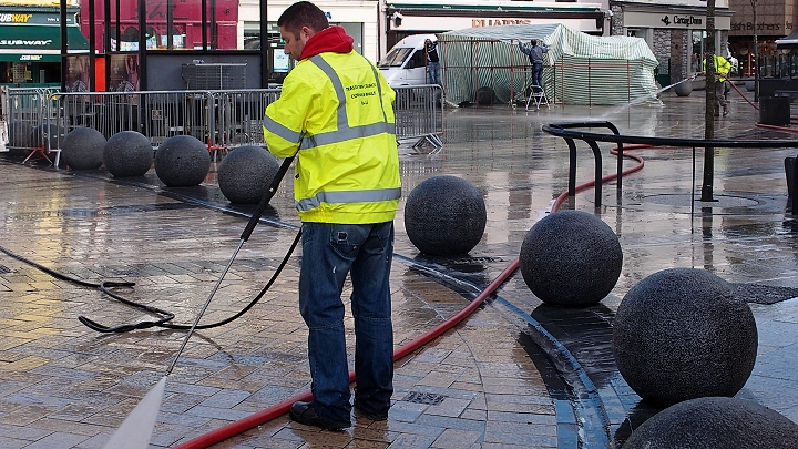Středeční dopoledne jsme chtěli věnovat vyřizování mailů. Za tím účelem jsme s Věrou napochodovali do městské knihovny, kde bylo připojení k internetu zdarma. Po krátkém zápase s hesly se to i povedlo. Cestou tam jsme zaznamenali, že úterní večer na náměstí musel být asi velmi zábavný; festival Rose of Tralee totiž stále pokračoval, takže městští počišťovači měli co dělat.