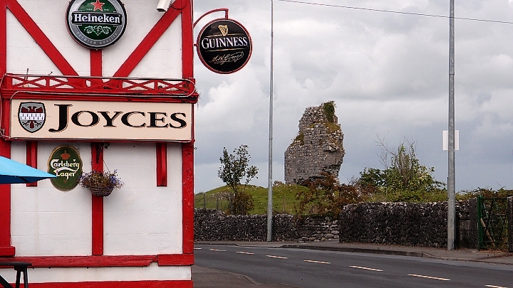 Hamburger v irském provedení je podstatně chutnější než jeho americký jmenovec! Dopolykat, zaplatit a kolem drobné ruiny hbitě dále.