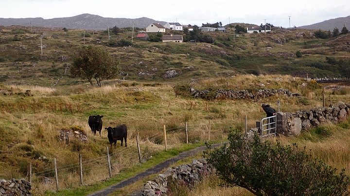 Nápisy irské, angličtina skoro žádná. Zajímavé jsou skalnaté pozemky, na kterých se vesele pasou tučná hovádka.