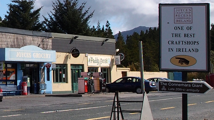 Cestou zpět jsme v Clifdenu navštívili velice dobře zásobený krámek s muzikou a potřebami pro muzikanty. V Irsku mají i ve velmi malých městech takové obchody běžně a zdá se, že všechny slušně prosperují. Měli tam i velký výběr bodhránů od laciných pro turisty až po profesionálně použitelné. No, my už jsme nakoupili v Tipperary. Jeden bodhrán pro domácnost stačí.