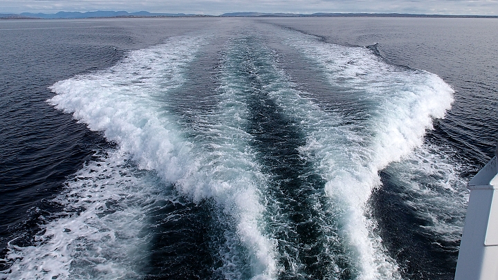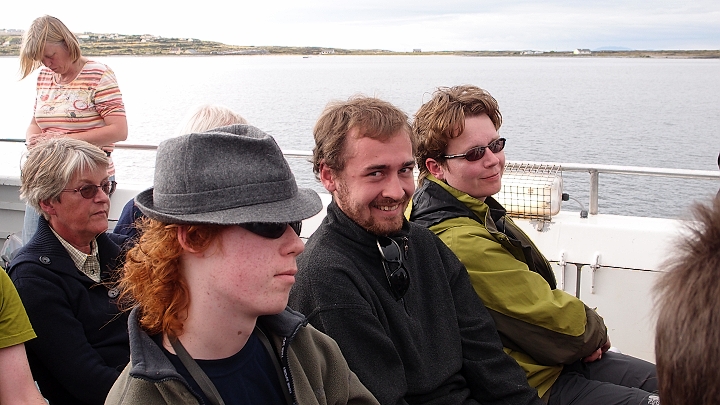 Ros-a-mhíl (Rossaveal). Jeli jsme ze západu z Cashelu, odbočku k přístavu jsme vůbec nezaregistrovali. Když se nám zdálo, že už jedeme příliš dlouho, obrátili jsme, jeli zpět (tedy jako od Galway) a hle: ukazatele, reklamy, všechno OK. Všichni přeci jezdí od Galway, ne? Nalodili jsme se, vypluli. Loď byla rychlá, zanechávala za sebou mocnou brázdu.