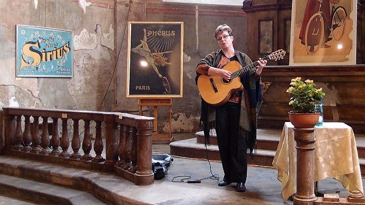 Věra si tam po delším váhání jeden pěkný zelený koupila. Hlavně jsme tam ale sehnali stylový kostým na vystupování v chladnějších prostorech, který úspěšně vyzkoušela hned po návratu do Čech na koncertu v Nymburku. Ten nákup byl asi jediným příjemným zážitkem v onom dni.