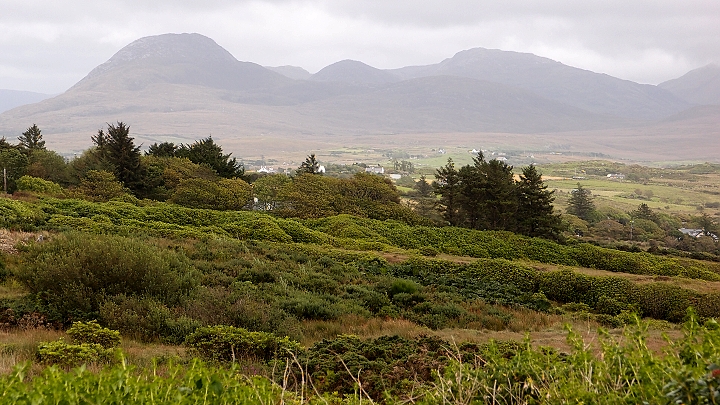 Letterfrack. Krásný výhled na hory od informačního střediska. Proč tam visela americká vlajka, to nevím. Ale panoramata vůkol byla velkolepá.