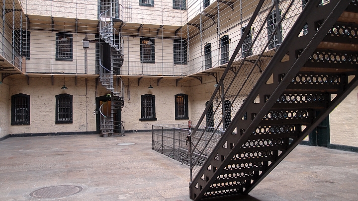 Kilmainham Gaol. Spatřili jsme ji poněkud schovanou za výdobytky moderní civilizace.