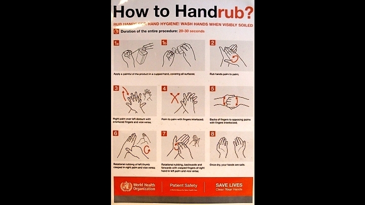 Rozveselil jsem se až na pánských záchodech: nad umývadlem visel velmi podrobný návod na mytí rukou...