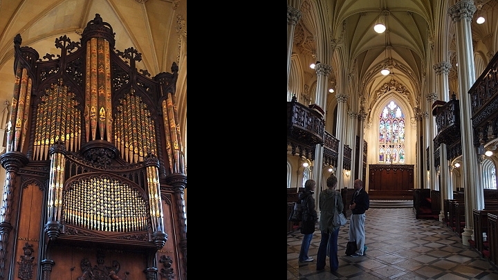 Ochotná průvodkyně se nás ujala zdarma. Zaujaly mě pestře pomalované píšťaly varhan.