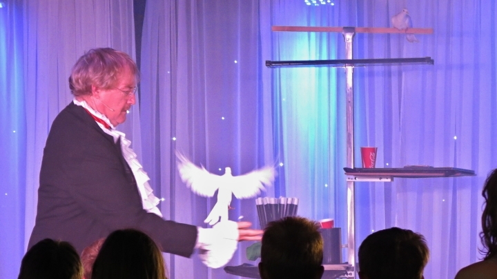 Mezitím v sále na sedmé palubě zuřila estráda pro děti. Kouzelník vykouzlil holubici, dětičky radostně ječely.