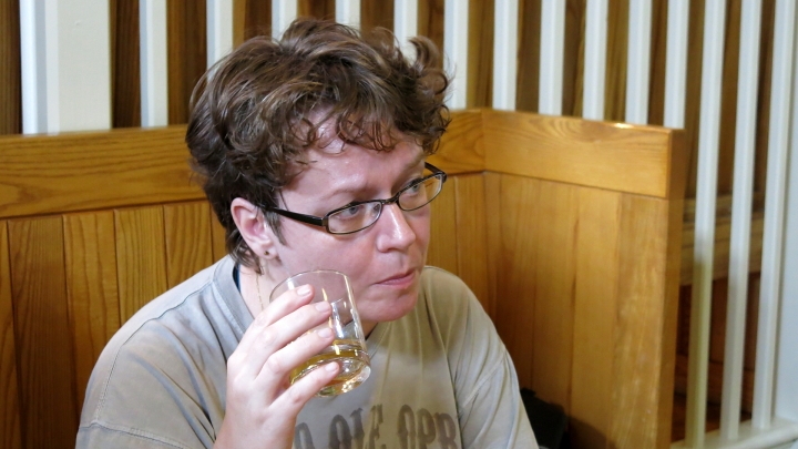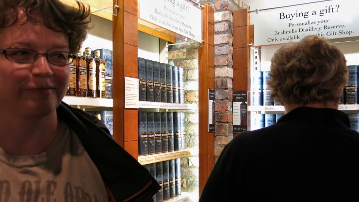 A pak jsme střízlivěli při prohlídce úžasného shopu, ve kterém bylo možno koupit vše, co tu vyrábějí; na následující fotce vidíte (za hlavou té cizí paní) regál s naprostým unikátem: dvanáctiletou