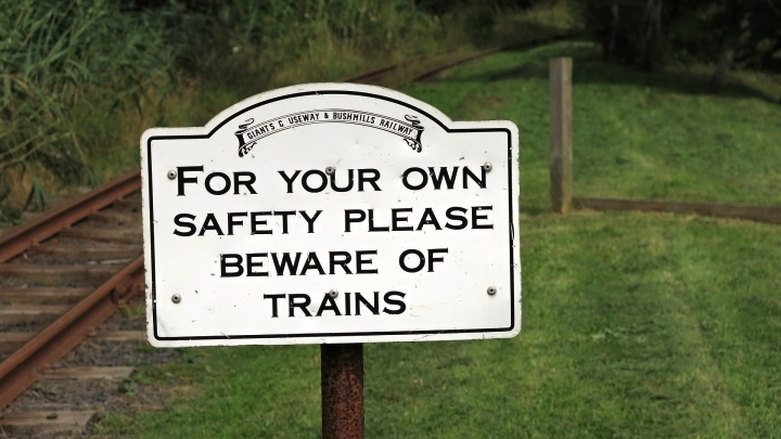 Prcháme kolem pláže k našemu autu. Cesta, na které psíci nesmějí kakat, běží chvíli okolo trati. Máme štěstí, zrovna jede vláček!