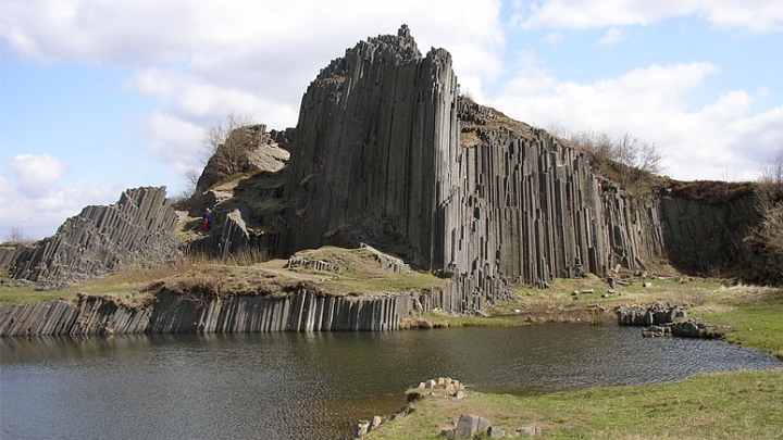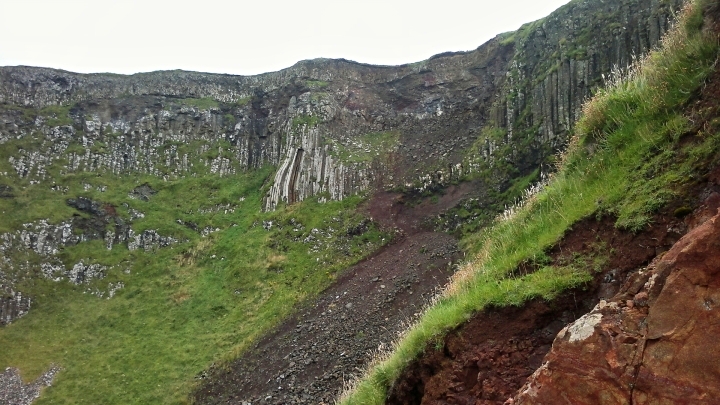 Věra a já jsme se mezitím blížili k hlavní atrakci. Samotný chodník je zcela obsypán turisty všech národností. Cupitají a lezou po čedičových svislých sloupech, které mají většinou šestihranný průřez, některé ovšem i jiný.