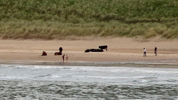 Pod námi vedla cesta na sousední pláž, avšat cedule hlásala, že se jedná o pastvinu pro ovce a dobytek! A opravdu, na pláži se kromě lidí povalovali i jacísi dobytkové!