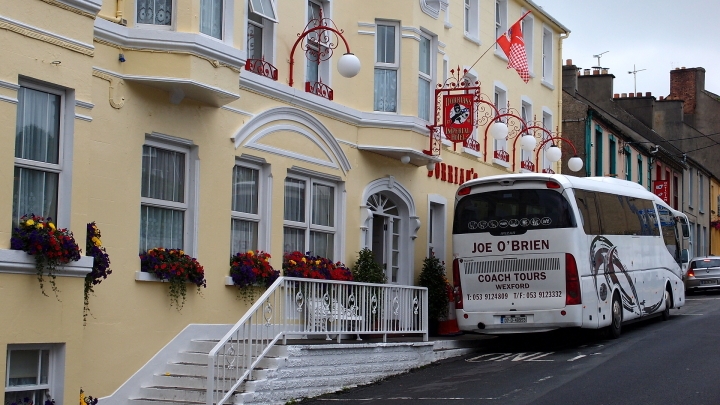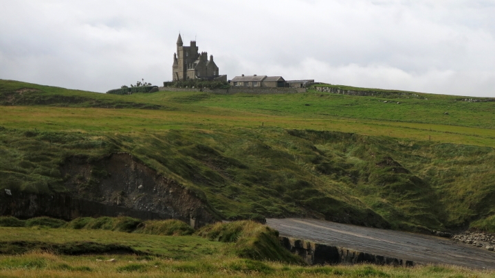 Donegalu, bývalém hlavním městě stejnojmenného hrabství. Město je to nevelké (asi 2600 obyvatel) s trojúhelníkovým náměstím, kamenným obeliskem, se starým kamenným kostelem, kamennou hospodou, kamenným hotelem a kamenným hradem s kamennými věžičkami na nárožích.